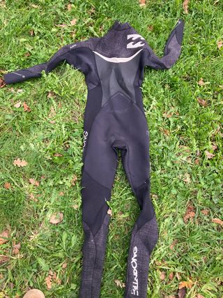 Traje de surf de manga larga para adulto, ideal para el verano. Diseñado para ofrecer comodidad y flexibilidad. - Color negro con detalles grises. - Logo de Billabong en blanco. - Cremallera en la espalda.