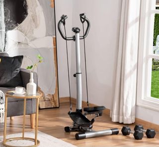 Máquina de Step con manillar y gomas para fines, nueva recién comprada en Amazon. Escucho Ofertas.