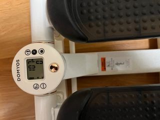 Step de la marca Domyos, sin uso y guardado. Ideal para ejercitar piernas y glúteos. Sin caja* - Pedales con superficie antideslizante. - Incluye bandas elásticas para trabajar brazos. - Pantalla digital para seguimiento de ejercicio.