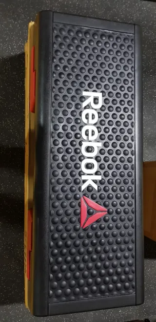 Plataforma de step Reebok, completamente nueva y sin abrir, conservada en su caja original. - Superficie antideslizante con relieve. - Diseño moderno y funcional. - Logo de Reebok visible. 9 unidades disponibles precio del pack 430€