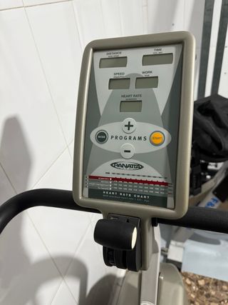 Máquina de step de la marca Panatta. - Pantalla digital con información de distancia, tiempo, velocidad, trabajo y pulsaciones. - Botones de programas, modo, inicio y ajuste (+/-). - Gráfico de pulsaciones por edad. Precio porque no incluye el metodo de transporte. Se puede ver y probar