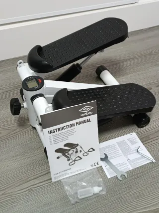 Máquina de step Umbro en color blanco y negro. Incluye manual de instrucciones y herramientas. - Pantalla digital. - Pedales antideslizantes. - Asas para tonificación de brazos. - Regulador de intensidad - incluye instrucciones y llave.