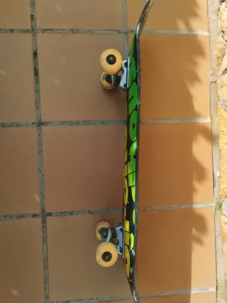 Patinete de la marca Sancheski. - Superficie de agarre negra. - Borde de madera visible.