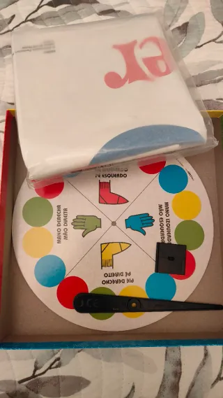 Juego de mesa clásico Twister. Sin embalaje de fuera pero está sin estrenar. Incluye tablero giratorio con círculos de colores y un spinner. - Tablero con instrucciones en español y portugués. - Spinner con indicaciones de mano y pie en diferentes colores. - Incluye piezas para jugar.