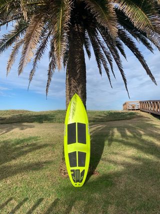 Tabla de Stand Up Paddle (SUP) para olas marca Gold Beach con los cantos reducidos . En perfecto estado, tiene una única reparación en uno de los cajetínes realizada en el propio taller de la marca por su shaper. - Medidas: 7’1”x24,5”x3,9”. 73,5 litros. - Superficie con grip antideslizante. - Cinco cajetines. -Quillas no incluidas. -Muy ligera.