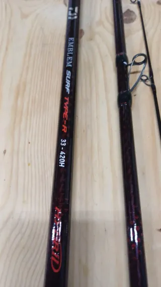 Se vende caña de pescar Daiwa Emblem Surf Type-R. Dos unidas disponible Precioñor unidad - Modelo: 33-420H - Diseño en color negro y rojo - Acabado brillante