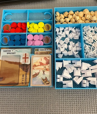 Organizador para el juego de mesa Tainted Grail. Diseñado para mantener todas las cartas y componentes ordenados. - Fabricado en plástico resistente. - Múltiples compartimentos para cartas y miniaturas. - Facilita la preparación y recogida del juego.