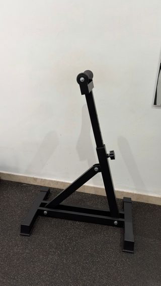Soporte landmine de acero negro con altura ajustable. Marca: Kensui. Características: - Base de 67cm de largo x 44,5cm de ancho. - Altura ajustable de 6 posiciones entre 67,5 a 92cm - Peso de 10,6kg Se envía desmontado. No lleva herramientas de montaje ni instrucciones. Serían necesarias dos llaves inglesas del 19. No leer: Rogue, ATX, Maniak, decathlon, Technogym, Cybex, Life Fitness, Etenon