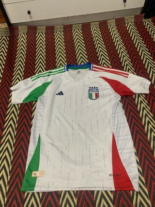 Camiseta de la selección italiana de fútbol. - Diseño blanco con detalles tricolores en verde, blanco y rojo. - Logo de Adidas y escudo de Italia bordados. - Tecnología HEAT.RDY para mayor transpirabilidad.