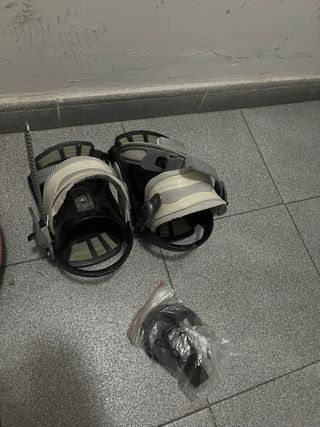 Talla 157. Lleva sin usarse 5 años. Está guardada en trastero. Lo único que tiene mal es la cinta alta de agarre a la bota, la de la parte inferior está bien. Tiene bolsa de transporte.