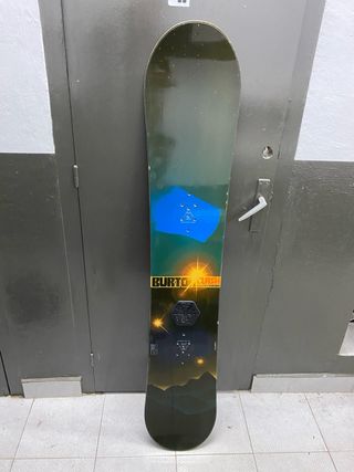 Tabla de snowboard Burton con sus fijaciones incluidas. Talla 159 y Fijaciones para bota 42-44 Tiene un pelín de corrosión en los filos y necesita de una visita al médico, por eso el bajo precio.
