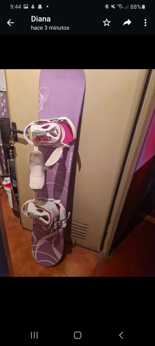 Tabla de snowboard Rossignol de 143cm, lista para la montaña. Incluye fijaciones. - Tabla de snowboard Rossignol. - Medida: 143cm. - Fijaciones incluidas. - Se regala Bolsa de transporte. Apenas uso, impecable, sólo tiene una mínima reparación (se ve en foto) de apenas 1cm.