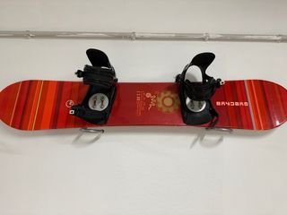 Tabla de snow usada en buen estado. Incluye dos fijaciones. Ideal para principiantes o para uso ocasional. - Marca: (No especificada en la imagen) - Modelo: (No especificado en la imagen) - Incluye 2 fijaciones - Presenta algunos arañazos superficiales.
