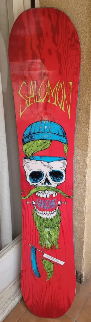 OFERTA FIN DE AÑO 99€ Tabla Snowboard Salomon Sanchez 146 Usada pero en buen estado con reparaciones en la base. VER FOTOS. IMPORTANTE Si te llevas las dos Salomón Sanchez y la Gnu el precio se queda en 270€. Cualquier duda o consulta será respondida a la brevedad. Nunca utilizada en cajones ni barandillas . Se entrega encerada lista para disfrutar de la nieve. Tabla de snowboard Salomon Sanchez de 146 cm. Diseño llamativo con gráficos de calavera, barba y navaja. - Marca: Salomon - Modelo: Sanchez - Medida: 146 cm
