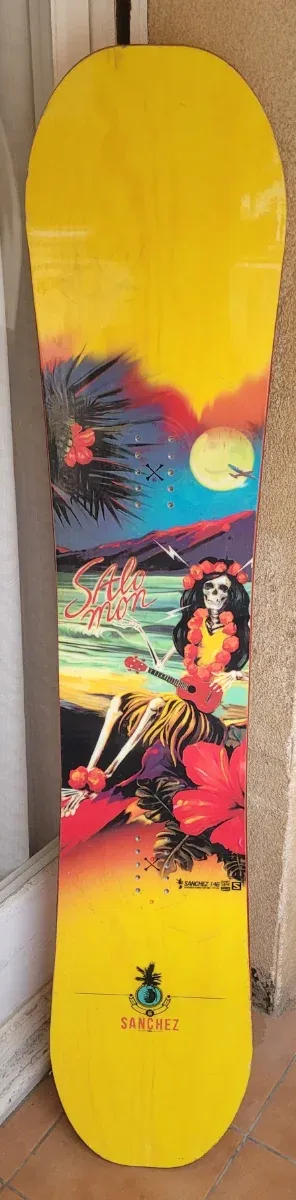 OFERTA FIN DE AÑO 80€ Tabla Snowboard Salomon 146 amarilla Usada con reparaciones en la base, tiene unos 3 cm de canto torcidos apenas un poco.(ver última foto) VER FOTOS. IMPORTANTE Si te llevas las dos Salomón Sanchez y la Gnu el precio se queda en 270€ Cualquier duda o consulta será respondida a la brevedad. Nunca utilizada en cajones ni barandillas. Se entrega encerada y lista para disfrutar de la nieve. Tabla de snowboard Salomon Sanchez de 146 cm con un llamativo diseño amarillo. - Diseño gráfico tropical con calavera. - Medida: 146 cm. - Color principal: Amarillo.