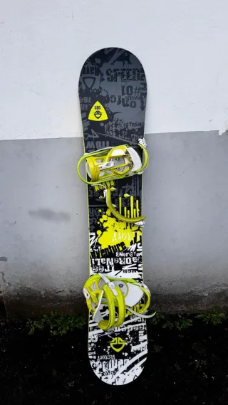 Tabla de snowboard con un diseño moderno y llamativo. - Tamaño: 146 cm. - Fijaciones incluidas.