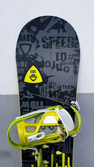 Tabla de snowboard Raven con fijaciones.