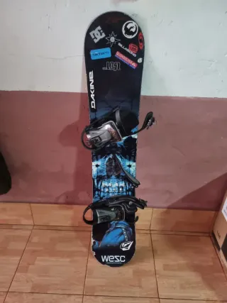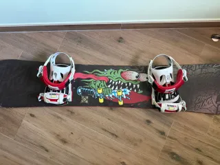 Se vende conjunto de tabla de snowboard con fijaciones y botas DC Shoes. - Tabla de snowboard con diseño gráfico. - Fijaciones de snowboard incluidas. - Botas de snowboard DC Shoes. Todo en perfecto estado, solo usado 2 dias