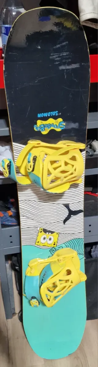 Tabla de snowboard para niños niñas Salomon de 100cm con diseño de Bob Esponja. Ideal para los más pequeños. - Diseño divertido de Bob Esponja. - Fijaciones rojas incluidas. - Longitud de 100cm. Burton CAPiTA Lib Tech GNU Jones Never Summer Arbor Bataleon Salomon Rossignol K2 Yes Rome Ride Nitro Flow Amplid Korua DC Nidecker Lobster Public Signal Slash Endeavor Gentemstick Moss Yonex Marhar Wired Niche Telos Lago