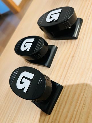 Set de tres soportes para tabla de snowboard de la marca Burton. Son negros con el logo blanco. - Sistema de Montaje de Tres Puntos -Adaptable a Cualquier Tabla - Se adapta a cualquier superficie plana - Diseño ovalado. - Logotipo de Burton en blanco. - Colocación se tabla en vertical o horizontal.