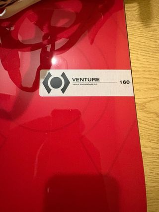 Tabla de snowboard con un diseño llamativo en color rojo. - Diseño con letras blancas. - Forma simétrica.