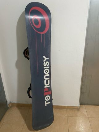 Tabla de snowboard de la marca Topicnoisy con un llamativo diseño verde. - Diseño con logo y gráficos. - Incluye fijaciones y funda de transporte Se vende x no usar y haberme pasado a los esquís. No se hacen envíos, recoger en mano