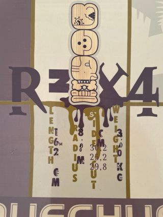 Tabla de snowboard Quechua R-X4 con un diseño gráfico llamativo. - Diseño a cuadros y con ilustraciones. - Marca Quechua. - Modelo R-X4. - Tamaño 162cm.