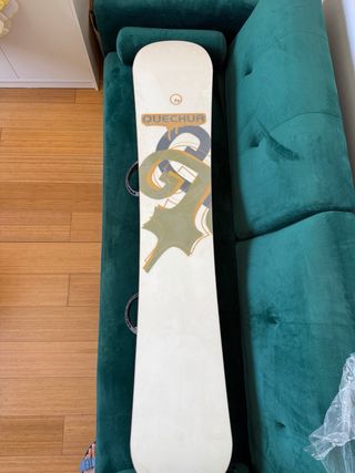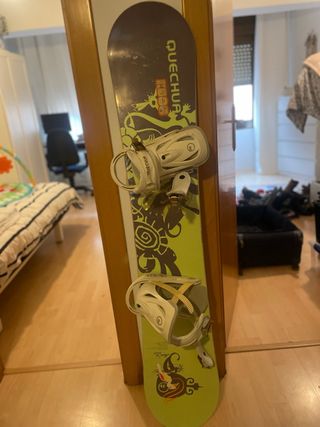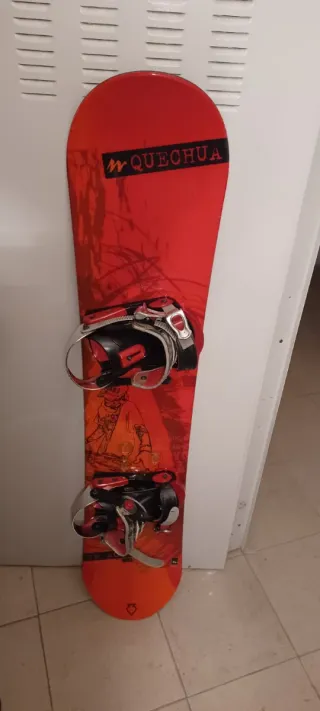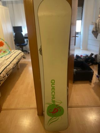 Tabla de snowboard de la marca Quechua Para personas de 1,70-1,85m Vendo tabla de snowboard Quechua usada durante 5 temporadas, cuidada y en buen estado. No necesita encerado ni reparación. Presenta las marcas normales de uso en la suela, pero funciona perfectamente. Ideal para iniciar en snowboard