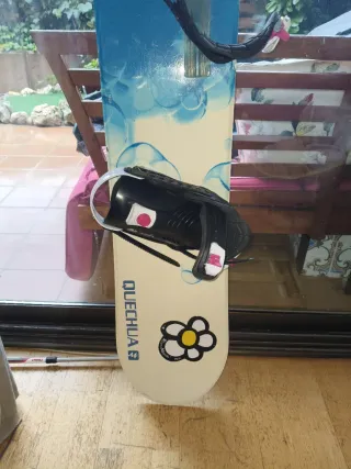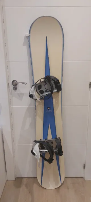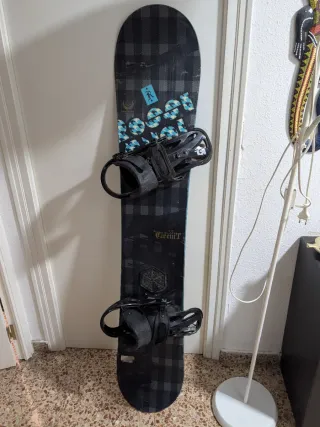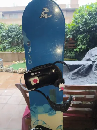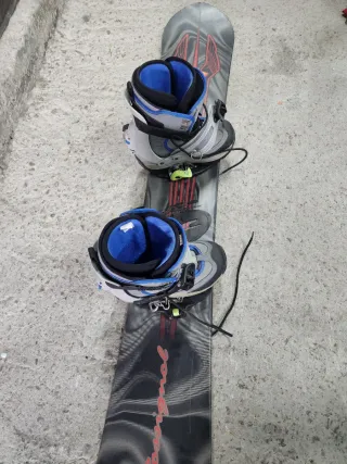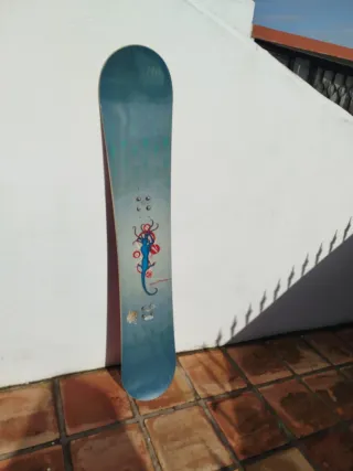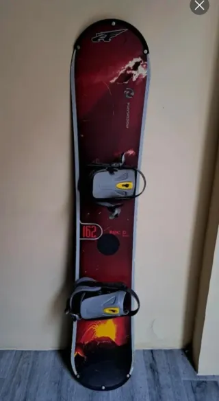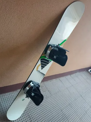 Tabla de snowboard de 149cm buen estado , ligeramente levantado en un extremo como se ve en la foto esteticamente Ideal para iniciarse o progresar en el snowboard se puede vender con fijaciones rossignol HC100 talla M el precio del conjunto serian 80