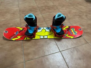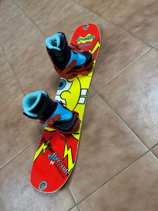 Tabla de snowboard Salomon Spongebob90 para niños con un divertido diseño de Bob Esponja. Incluye fijaciones y Botas talla 29 - Diseño de Bob Esponja. - Fijaciones Salomon. - Ideal para iniciación.