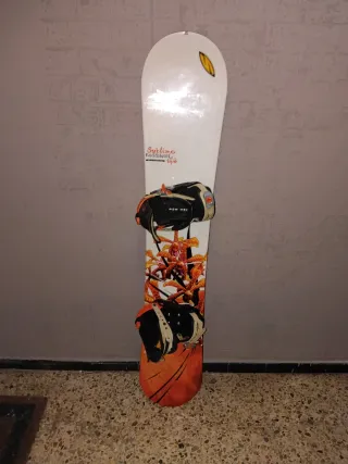 Tabla de snowboard blanca con diseño de flores naranjas y amarillas. Incluye fijaciones. - Diseño blanco con detalles florales. - Fijaciones incluidas.
