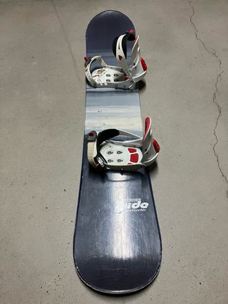 Tabla de snowboard lista para la acción. Incluye fijaciones para un ajuste seguro. - tabla rossignol + fijaciones burton - Diseño en tonos azules y grises. - Fijaciones de color blanco y negro. - regalo funda de transporte. - la tabla es para un persona que mida entre 175'a 1'90 +/- - largo 1'60 - fijaciones para un número 45/46