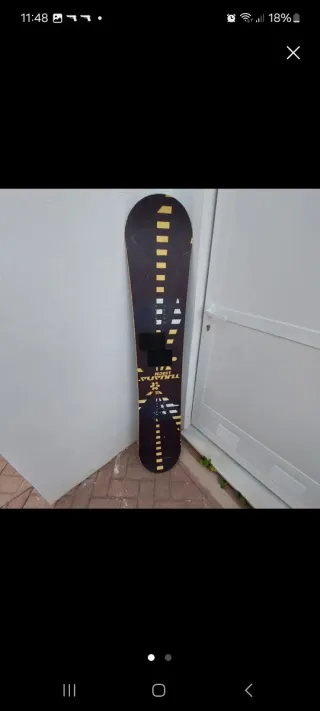 Vendo tabla de snow. Tabla y fijaciones Salomon. Usada hasta este invierno, recien lijada y encerada, va perfectamente. Las almoadillas de las fijaciones tienen el plastico un poco pelado de las botas pero no afecta a nada. 156cm Puedo entregar en mano en Barcelona y en Valencia. - Marca Salomon. - Fijaciones incluidas para un montaje rápido.
