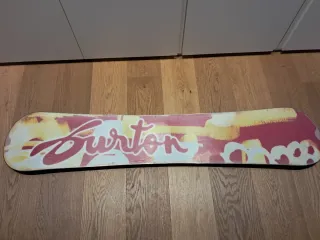 Tabla de snowboard de la marca Burton con fijaciones incluidas. Se encuentra en buen estado, se ha usado dos temporadas de invierno. Es una tabla muy versátil, perfecta para pista pero también para snowpark. Muy buena tabla para iniciación en el deporte o nivel intermedio. Tabla perfecta para hombre o mujer alta, el largo de la tabla es de 152cm. - Diseño con detalles en morado y blanco. - Incluye fijaciones negras Drake.