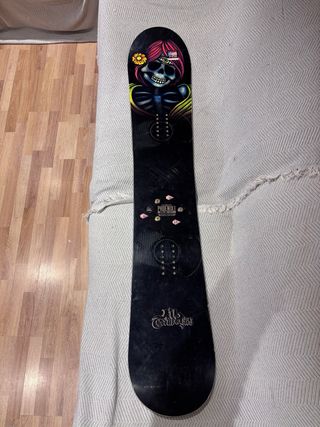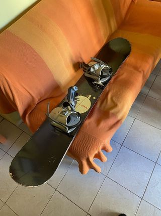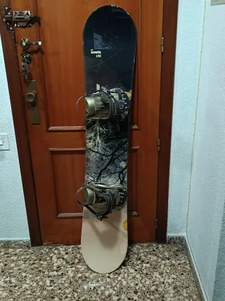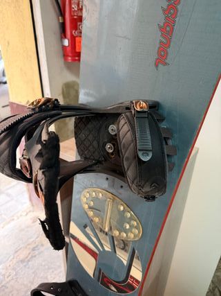 Tabla de snowboard lista para la acción. Incluye fijaciones. - Diseño con gráficos llamativos. - Fijaciones negras ajustables. tengo una tira del strap rota