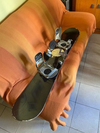 Tabla de snowboard con fijaciones incluidas. Equipo completo para hacer snowboard. Ultilizado únicamente una vez. Ideal para una persona de entre 1'80 y 1'95 Equipo compuesto de: Tabla talla 168cm Fijaciones