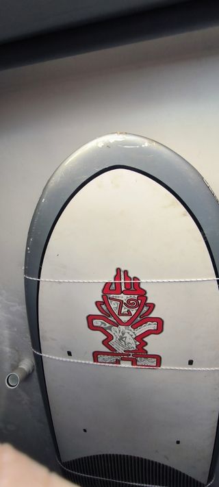 Tabla de paddle surf rígida en buen estado, es necesario una kia de tornillo y tuerca ( si la encuentro te la regalo). Se le puede poner 3 kias Tiene reparaciónes con fibra de vidrio. 365cm largo aprox 85cm ancho aprox