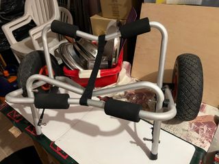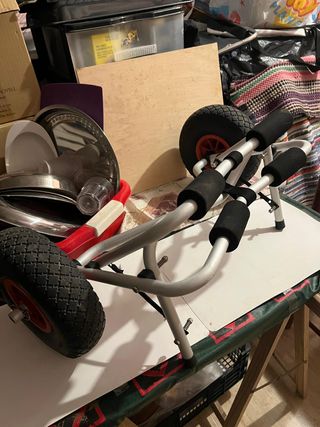Carro para transportar tu kayak o tabla de paddle surf de forma cómoda. Estructura de aluminio, no presenta óxido y prácticamente está sin ningún uso.