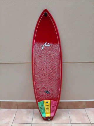 Tabla de surf en estado impecable, modelo RSV, hecho para dar el salto a un surf de nivel avanzado, rápida, maniobrable y gentil con los fallos, muy polivalente. Fabricada en epoxy, es una 5.9 de 27.4 litros, muy ligera y buena flotabilidad, desde 0.5m de ola hasta 1.5m pasado, gracias a su buen agarre y a su rocker suave. Medidas en la última foto. Sistema de quillas Futures.