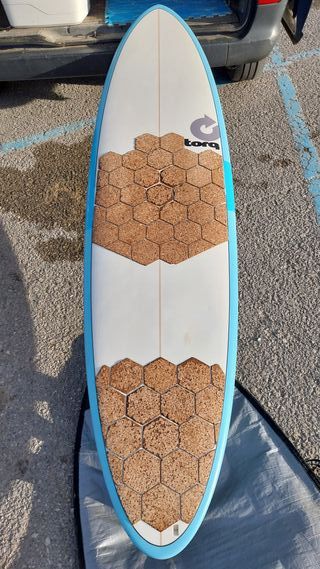 Tabla de surf Torq PG-R Epoxy con un diseño hexagonal en la parte superior y un tail pad de alto agarre. - Diseño hexagonal en la cubierta. - Tail pad con secciones verdes y negras. - Logo de Torq visible. Muyyy a mi pesar pongo a la venta este tablón!! Ya no tengo 20 años necesito algo con más volumen. Tiene 2 años y es una maravilla, súper versátil para mediterráneo..olas desde 0,5 hasta 2m sin problema, agarra super bien a la pared con este sistema de quillas y permite giros cerrados. Muy cuidada no tiene ni un rasguño, El Pad es nuevo y la entrego con las quillas sin invento. Solo la tabla valorada en 620€.