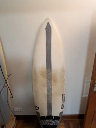 Medidas: 5'10'' 18 7/8'' 2 1/4'' - 26,3 litros Se vende sin quillas Tabla en perfecto estado sin reparaciones excepto un toque / arreglo provisional que tiene en el cajetín de la quilla derecha (se ve en la foto) Epoxy en construcción FST durísimo