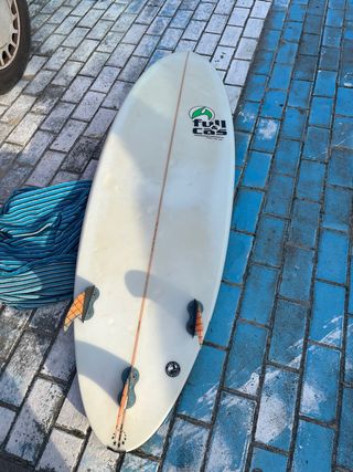 Tabla de surf Full&Cas, modelo evolutivo de 6.4 pies. Ideal para progresar en el surf. - Diseño evolutivo. - Medida: 6.4 pies. - Marca: Full&Cas. Tabla mágica de surf Full&Cas evolutiva 6.4. me he cogido mis mejores olas con esta tablita. Es perfecta para empezar a surfear. Tiene toques porque está bastante usada, pero no necesita reparación. La vendo sin quillas, con grip y con funda. tiene unos 35litros. Es estrecha y con litros delante.