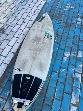 Tabla de surf FR de 6'8. 41,7 L. Muy buen estado general. Es una tabla bastante nueva (2 años, poco uso). Arreglo profesional en uno de los rails (ver foto). Tabla evolutiva, ideal como siguiente paso al softboard. Incluye quillas y funda Northcore 7’0
