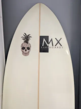Tabla de surf evolutiva con diseño de palmeras y calavera. Vale para entrar a surfear cualquier día, desde 0,5m hasta 2,5m de olas. Es el punto intermedio entre una minimalibú y una tabla corta, para empezar a hacer giros y que a la vez te ayude en la remada para poder entrar en la ola 🌊 - Marca: MX SURFBOARDS - Diseño superior: Calavera con piña, palmera y logo MX - Diseño inferior: Palmeras sobre fondo azul - Quillas: 3 quillas future + 15€ Precio de la tabla: 250€ Precio de la tabla + quillas: 265€ Sólo venta en persona en mi lugar de domicilio.
