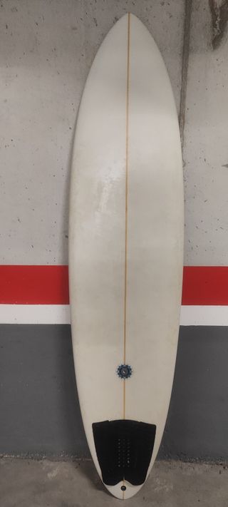 Tabla de surf evolutiva de 6'2 fibra. Ideal para progresar en el surf, muy versátil y con volumen (no pudeo especificaros litros) - Incluye grip en la parte superior. - Se regala leash negro. - Podéis ver un golpe que se tiene que reparar. La parte blanca fue reparada y reforzada.