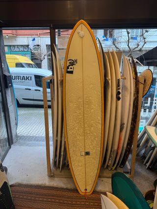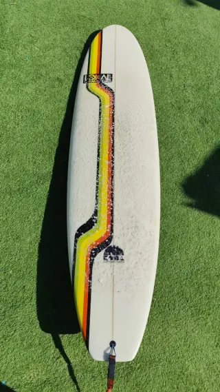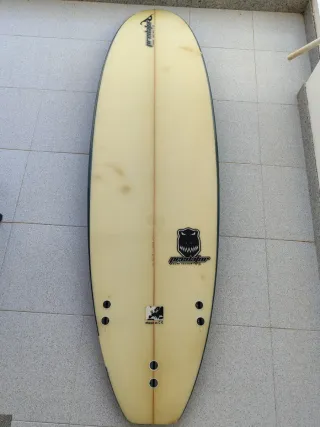 Tabla de 7'2 pies de longitud Ancho de 21 1/4 Volumen de 50 litros. Viene con pegatinas para colocar GoPro en la parte delantera de la tabla y tres quillas. Tabla ideal para dar el salto de espumera a tabla evolutiva (nivel intermedio-bajo). No permite hacer "duck dive" Invento (leash) y funda incluidos.