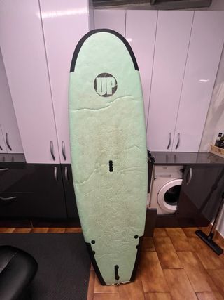 Tabla de surf de corcho con un tamaño de 7 pies y 2 pulgadas. Ideal para disfrutar del mar como primera tabla e ir aprendiendo. Marca UP. Tiene arreglada la cola con un producto resistente al agua del mar, todavía da para bastantes baños antes de pasar a una evolutiva. Acepto cambio por unos esquis para alguien con una altura de 188cm de pista y que tenga nivel principiante tirando para intermedio y estaría dispuesto a poner dinero si hiciera falta.