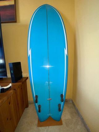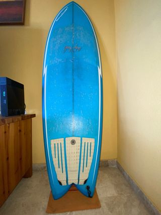 Tabla de surf estilo retro fish de la marca Nacho Agote. - Medidas: 5.9 pies de largo, 21 pulgadas de ancho, 2.3/8 pulgadas de grosor. - Diseño de quillas fijas twin fin Se incluye funda ripcurl y Grip cómo se ve en la foto.. Tabla bien cuidada, con pocos bollos y con el volumen bien mantenido.