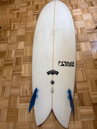 Tabla de surf tipo Twin Fin/Fish de la marca Full&cas. Fibra, diseño clásico, medidas en la foto 4. Incluyo quillas marca Honey. Tiene un pequeño rasguño (como se ve en una foto) que fue arreglado correctamente.