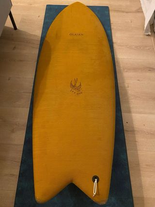 Tabla de surf tipo fish de la marca OLAIAN. en perfecto estado, tiene una reparacion hecha por un profesional, la tabla es perfecta para principiantes o nivel intermedio, debido a su gran litraje. perfecta como primera tablaa pequeña. la entrego con: - pad surf . - Quillas . - Leash - funda no se envia. se puede ver/ entregar en Hendaye o Irun.